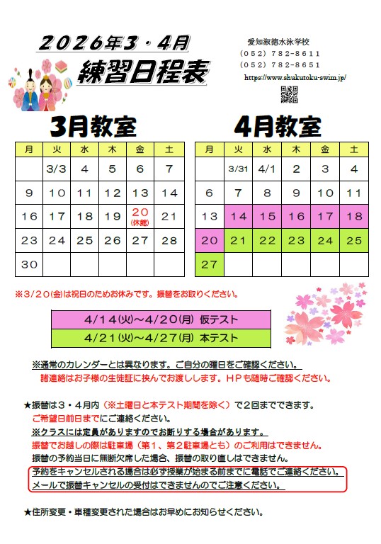 愛知淑徳水泳学校(052)782-8611へお電話ください。